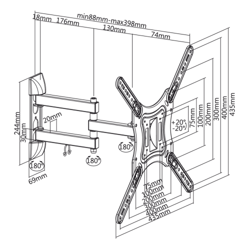 Uchwyt do ściany 23-55 cali czarny LPA51-443 (regulacja w pionie i w poziomie)