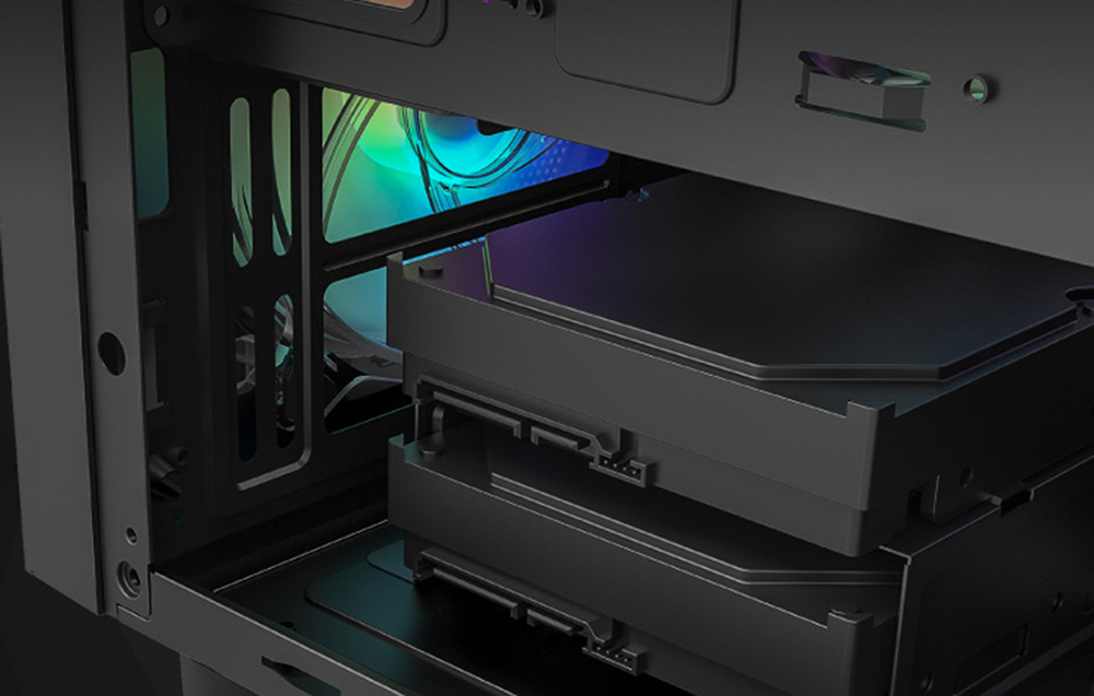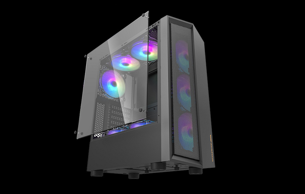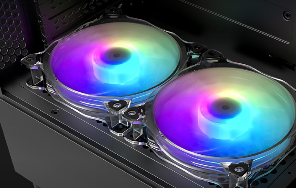 Sukurkite savo svajonių kompiuterį ir nesijaudinkite, kad jis perkaista. Korpuse įrengtas aukštos klasės vidinis aušinimo kanalas ir galima sumontuoti iki 5 ventiliatorių. Be to, 2 ventiliatorių lizdai yra virš maitinimo bloko dangtelio. Taigi galite mėgautis efektyviu aušinimu ir įdomiu RGB efektu.