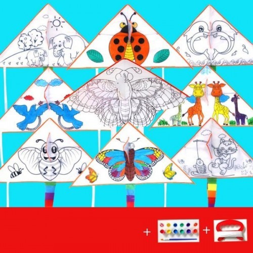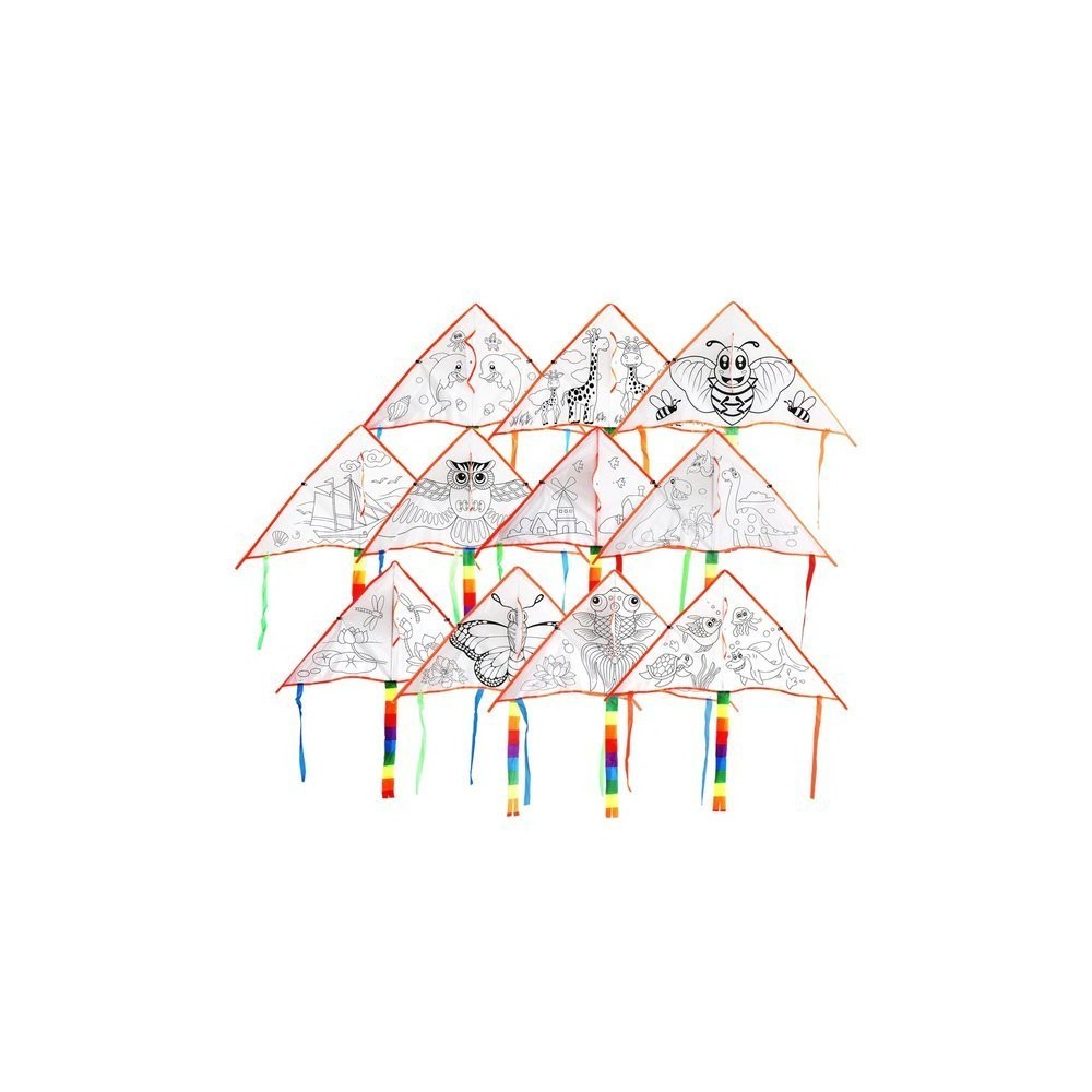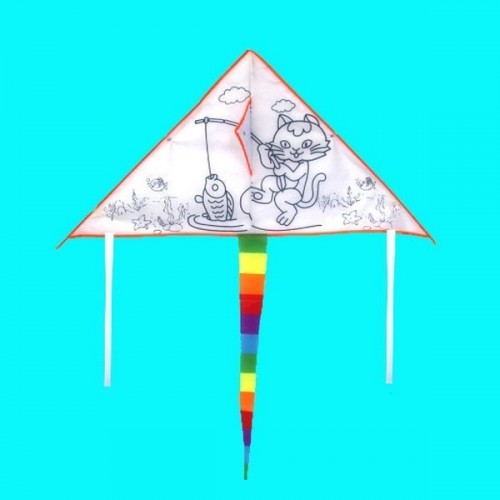 Kreatywny latawiec o wymiarach 90x47cm posiada nadrukowany wzór do malowania farbami. Dzieci mogą użyć swojej wyobraźni przy kolorowaniu latawca. Lekka konstrukcję powoduje, że latawiec unosi się doskonale na wietrze a nieduża rączka pozwala na wygodna sterowanie nawet przez młodsze dzieci.