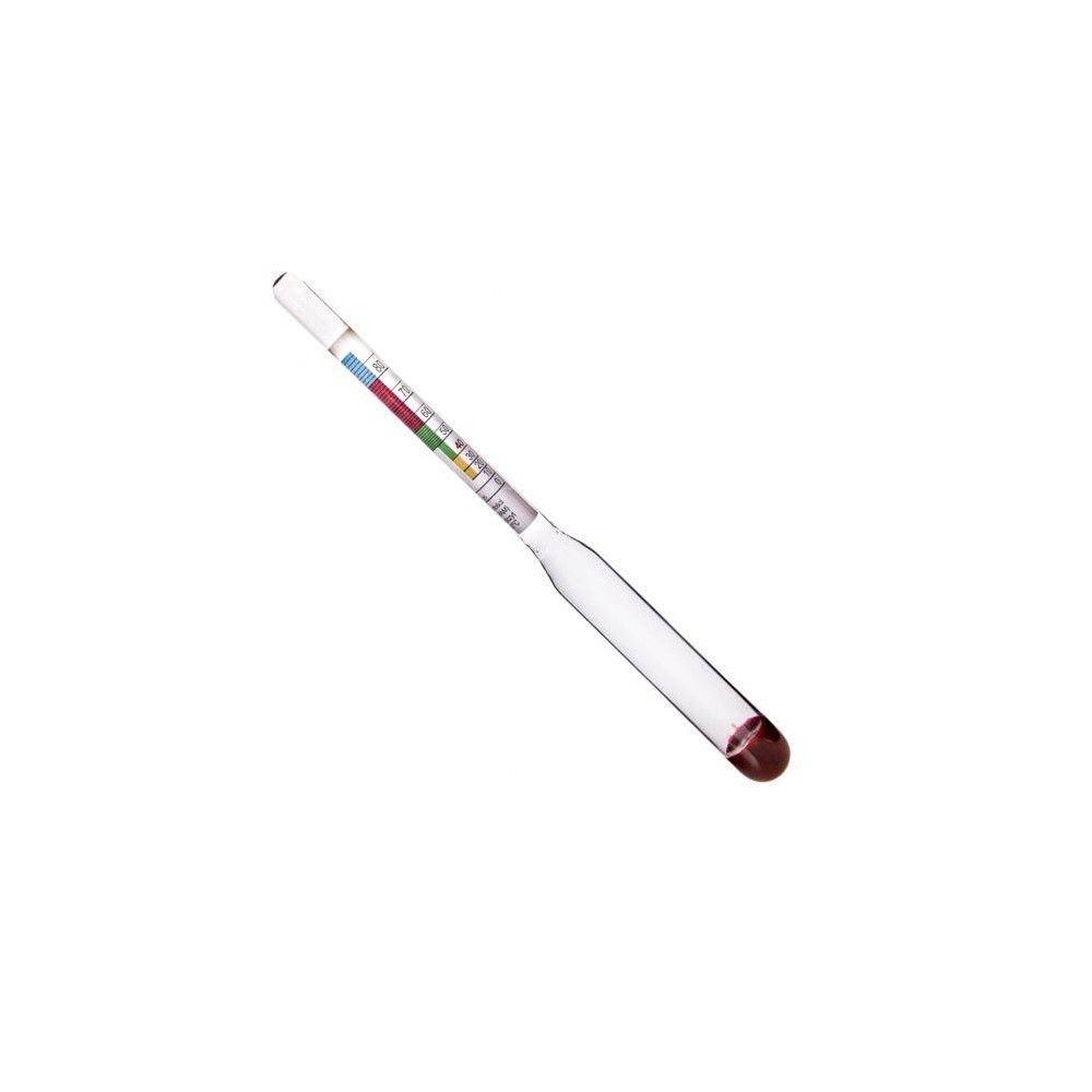 Alkoholomierz służy do pomiaru stężenia alkoholu w skali 0-96%. Rzetelny pomiar uzyskamy wyłącznie w spirytusie i czystych wódkach. W alkoholach z dodatkami lub z substancjami słodzącymi pomiar nie będzie wiarygodny. Alkoholomierz skalibrowany jest w 20°C