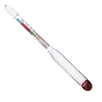 Alkoholomierz skalibrowany jest w temperaturze 20°C oznacza to, że pomiar powinno wykonać się w momencie kiedy badany alkohol ma taką temperaturę. W takim przypadku odczyt z pionowej skali areometru jest rzeczywisty.