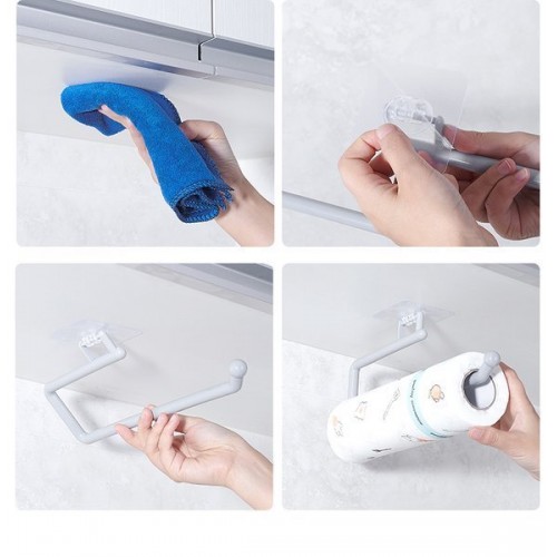 Uchwyt na ręczniki, papier i folię, papier toaletowy to znakomite rozwiązanie na powieszenie akcesoriów kuchennych i łazienkowych. Wieszak można przylepić na płytkach, meblach, lustrze, ścianie lub innej płaskiej i gładkiej powierzchni.