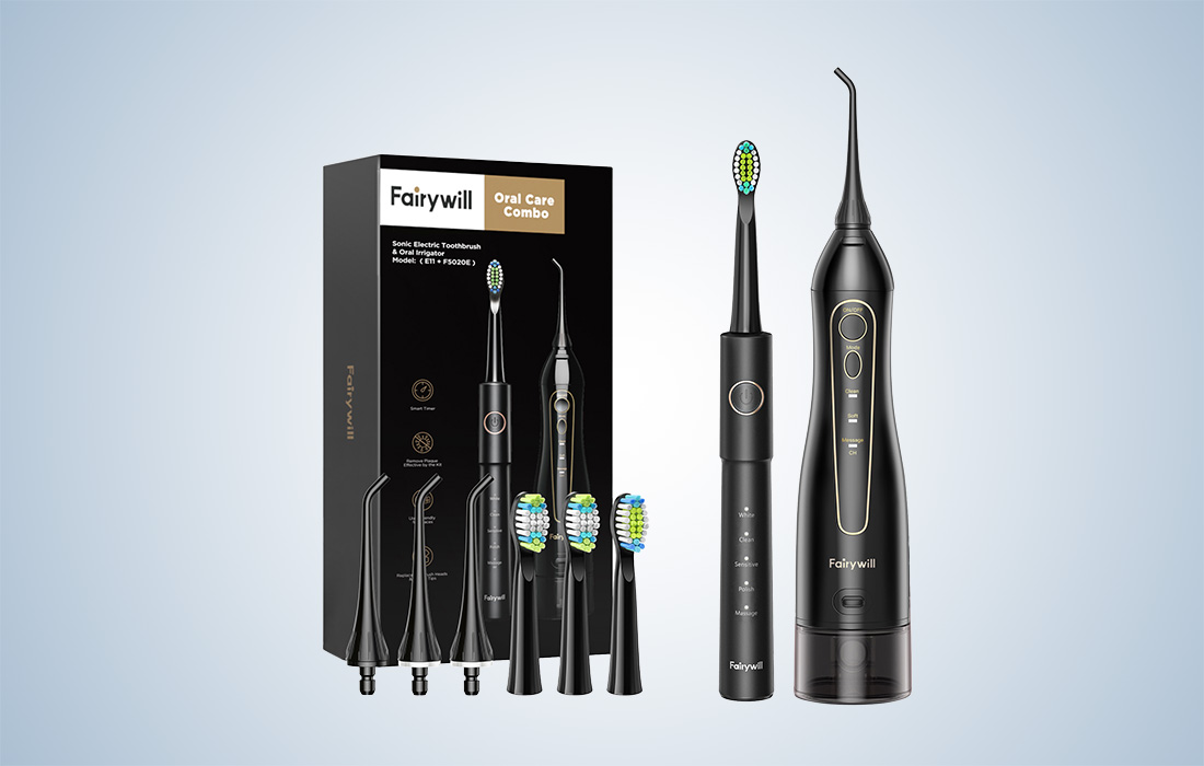 Szczoteczka soniczna do zębów FairyWill FW-E11 z zestawem końcówek oraz irygatorem FairyWill FW-5020E
